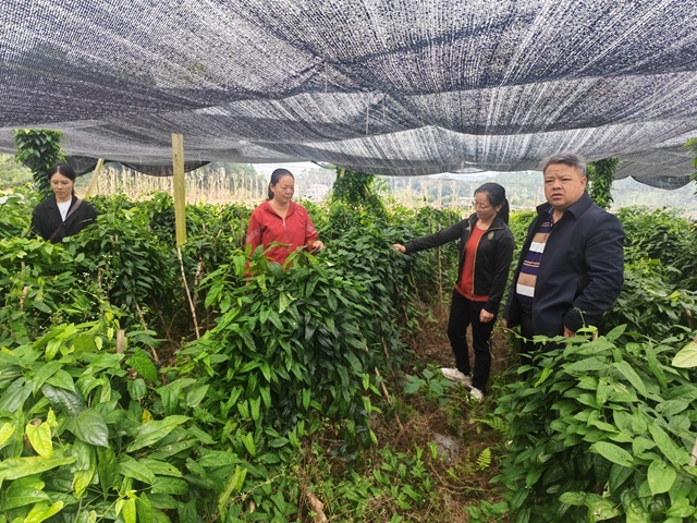 首先,技术指导组人员到达高尚镇金山村中药材基地查看了当前金果榄、百步、三叶青等中药材的生产情况,并跟种植户详细地了解这些中药材在施肥、田间管护、病虫防控等关键环节存在的问题,并指导种植户要优先选用经过鉴定的、纯正的道地药材种子和种苗,用腐熟的有机肥施肥,防治病虫害时注意用药安全,尽量使用低毒、低残留的农药。