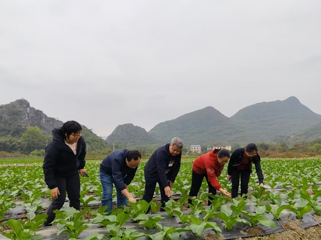 10月31日桂林市经作站科技特派员蒋玉梅、汤雪莲、杨芝霓、李林超组成技术指导组到兴安县开展中药材和蔬菜的生产指导工作。