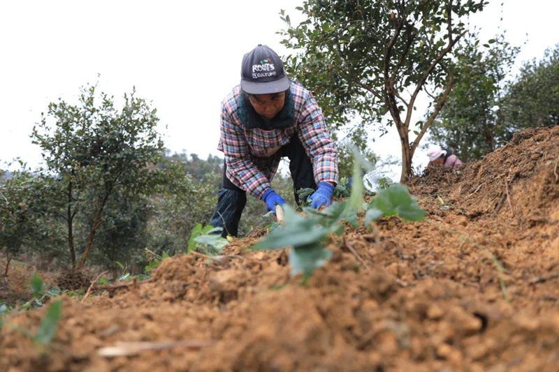 “我们实施‘合作社+’模式,已吸纳80余户社员,种植面积达380亩,预计亩产鲜果2000斤,干果约300斤。市场售价为鲜果50元/斤,干果260元/斤,预估亩产值约8万元。施肥和除草工作由社员乡亲负责,每日收入120元。收获季节,按收益的5%分红,让村民实现家门口就业增收。”锦屏云丰油茶种植农民专业合作社负责人吴庆洪介绍道。