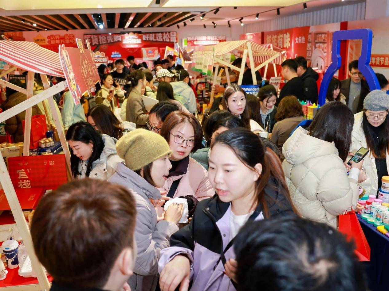 在这场年货节品鉴会上,三只松鼠、认养一头牛、百草味、大希地、泸州老窖、圣牧有机、红蜻蜓、星期六、范思蓝恩、坦博尔、雪中飞、彤人秘、华熙生物、植护、迪士尼、富安娜等100多个知名品牌齐聚一堂,覆盖滋补保健、大牌酒水、粮油干调、乳品冲饮、生鲜冻品、精品男装、时尚女装、美妆个护、童装童鞋、生活百货等多个领域,为消费者提供一站式置办年货的购物体验。