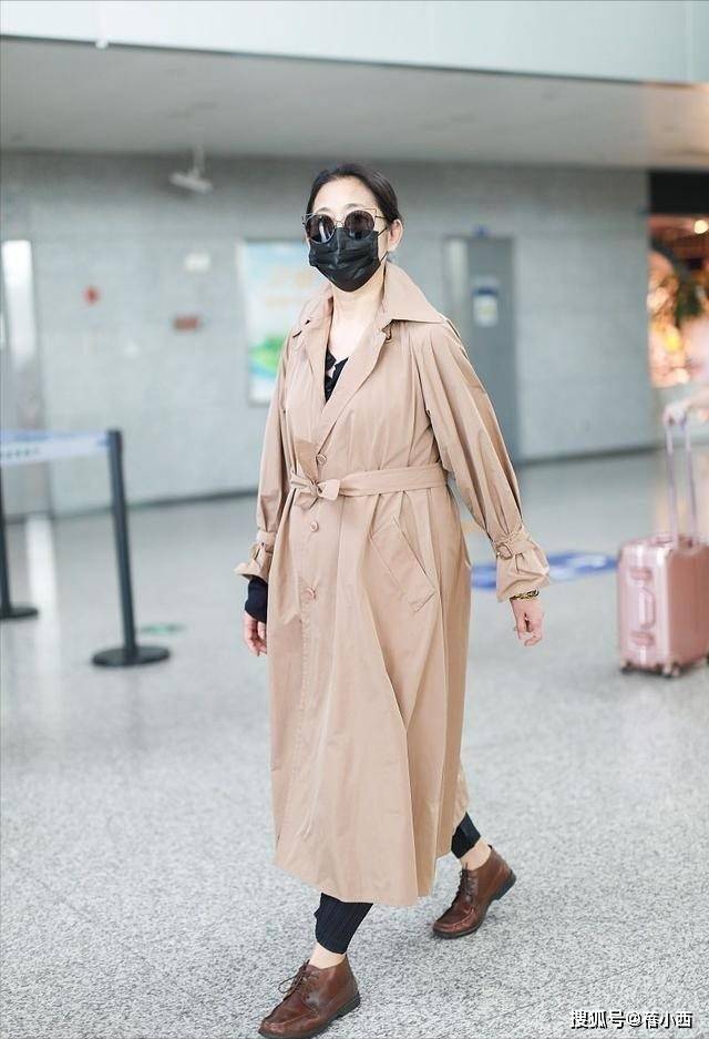 机场搭配中,倪萍身穿卡其色风衣再次出镜,却因束腰设计呈现出完全不同的风格,腰间的腰带将宽松的风衣勾勒出清晰腰线,能瞬间优化身材比例,尽显干练利落的气质。内搭的黑色打底衫低调内敛,与风衣的浅卡其色形成明暗对比,简约中见精致。