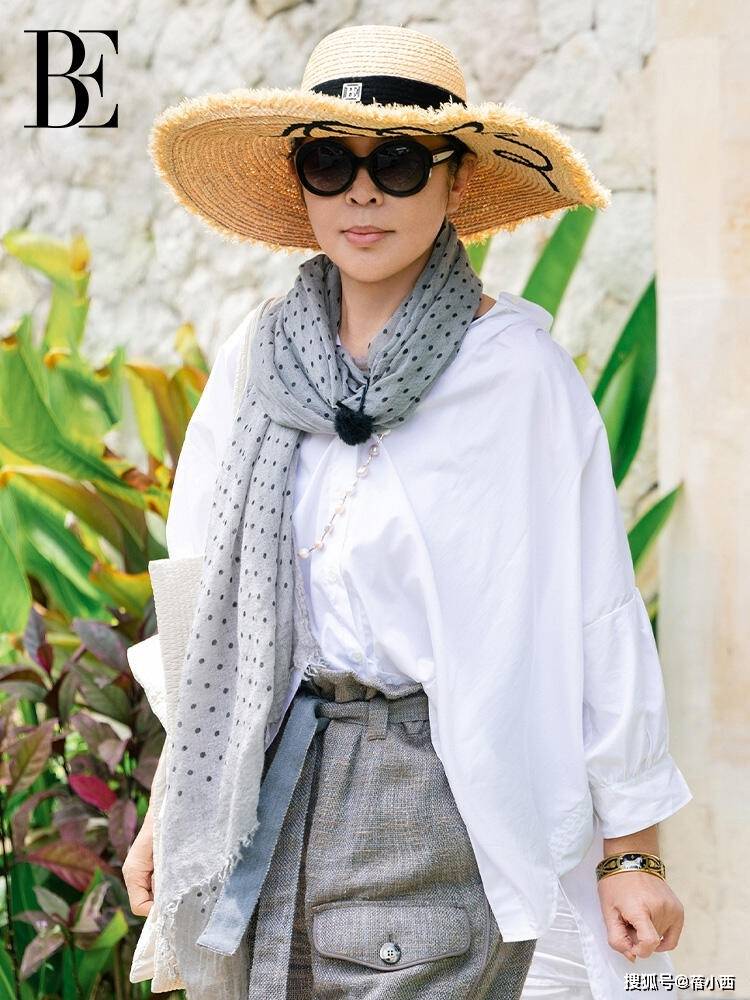 这套户外穿搭则将倪萍的时尚感延伸到了度假场景,超大檐的草编帽自带度假氛围,帽檐的毛边设计与黑色装饰带,让造型充满随性的时髦感。搭配白色宽松衬衫,简约清爽,配合波点丝巾,材质轻盈柔软,既丰富了视觉层次,又为整体注入了温柔气息。